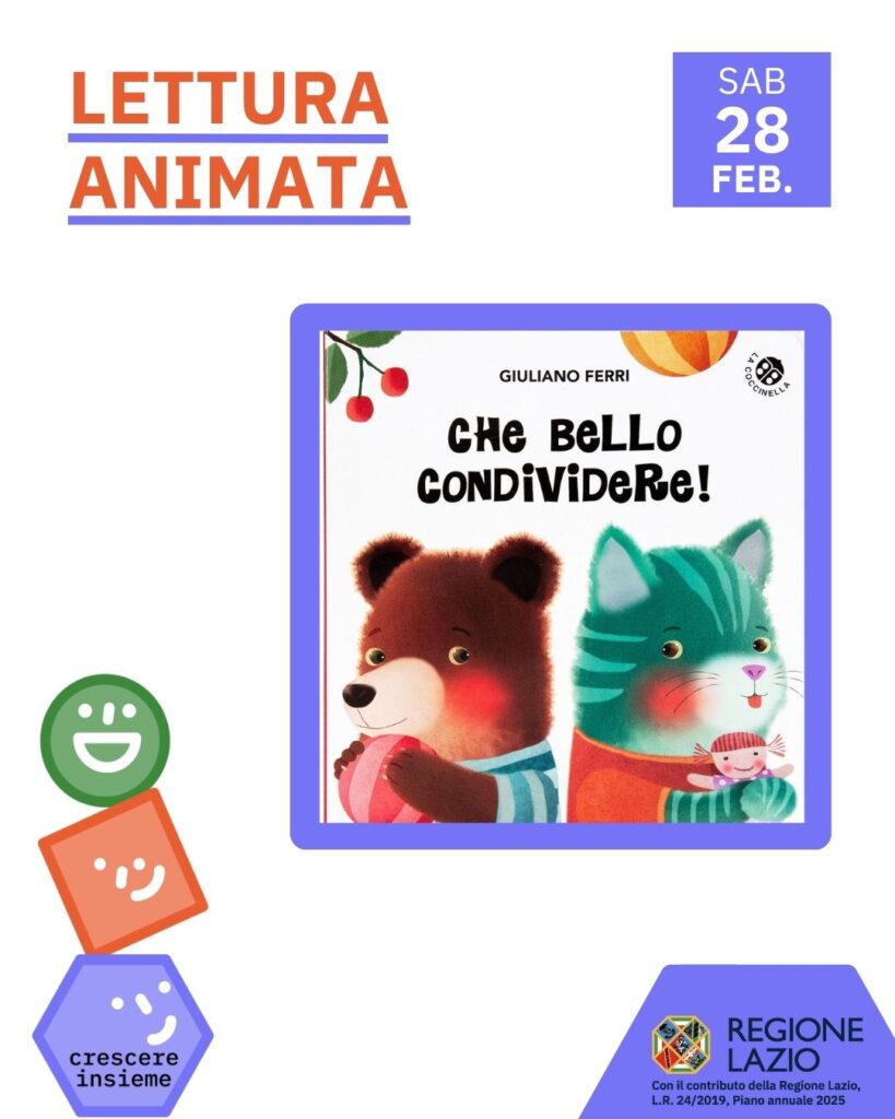 A febbraio ti aspettano 4 appuntamenti nel bookshop dedicati al progetto Crescere Insieme, realizzato con il contributo della Regione Lazio, L.R. 24/2019, Piano annuale 2025, pensato per promuovere una cultura fondata sul rispetto, sull’inclusione e sull’accessibilità grazie ad attività educative orientate alla valorizzazione della diversità e alla tutela dei diritti dell’infanzia, con particolare attenzione alla prevenzione del bullismo.